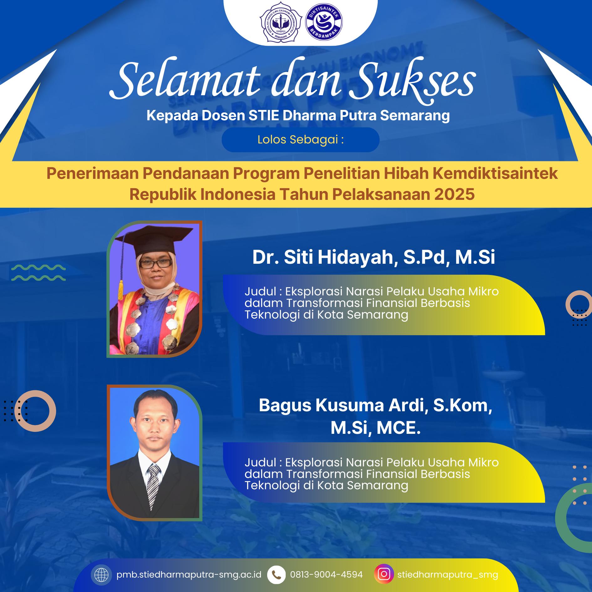 Penerimaan Pendanaan Program Penelitian Hibah KEMDIKTISAINTEK Republik Indonesia Tahun Pelaksanaan 2025